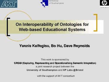 <Notice: Removed> On Interoperability of Ontologies for Webbased Educational Systems PowerPoint PPT Presentation