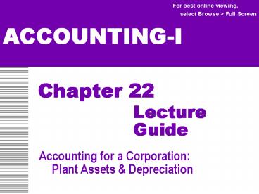 Accounting for a Corporation Plant Assets