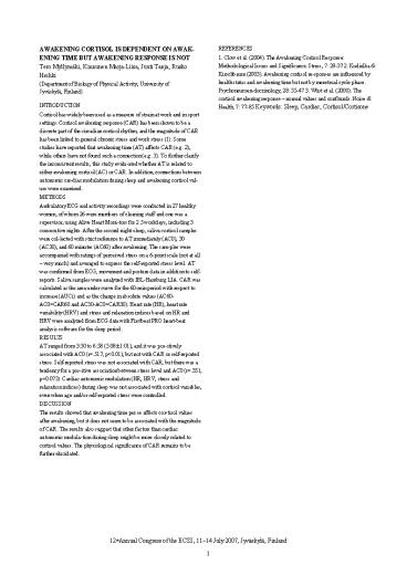 Kirschbaum (2003). Awakening cortisol re-sponses