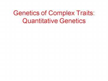 Title: Genetics of Complex Traits: Quantitative Genetics