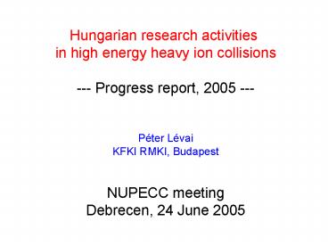 --- Péter Lévai KFKI RMKI, Budapest NUPECC