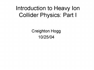 <Notice: Removed> Introduction to Heavy Ion Collider Physics: Part I PowerPoint PPT Presentation