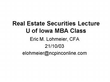 Title: Real Estate Securities Lecture U of Iowa MBA Class