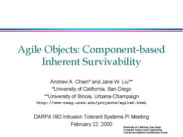 Title: Agile Objects: Componentbased Inherent Survivability