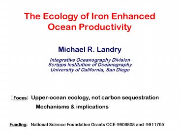 Title: The Ecology of Iron Enhanced Ocean Productivity