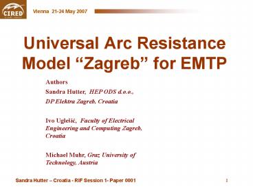 Title: Universal Arc Resistance Model Zagreb for EMTP