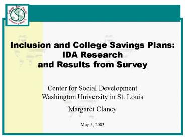 1 Inclusion and College Savings Plans IDA