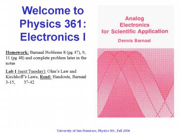 1 (next Tuesday) Ohms Law and Kirchhoffs Laws,