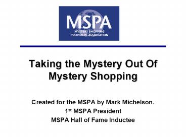 dedicated to the mystery shopping industry - Non-profit association founded in 1998
