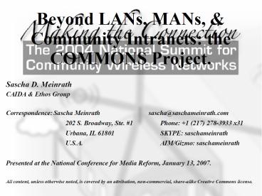 1Beyond LANs, MANs, Community Intranets the