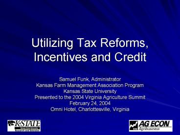 Utilizing Tax Reforms, Incentives and Credit PowerPoint PPT Presentation