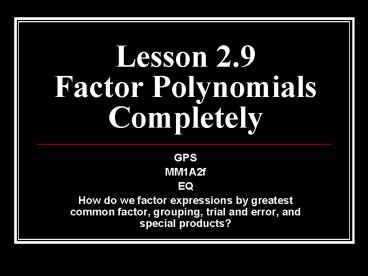 Title: Lesson 2'9 Factor Polynomials Completely