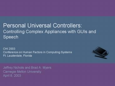 Jeffrey Nichols and Brad A. Myers PowerPoint PPT Presentation