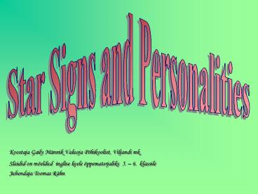 Title: Star Signs and Personalities