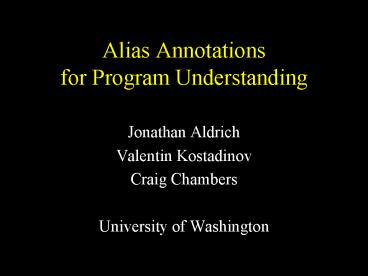 Alias Annotations for Program Understanding PowerPoint PPT Presentation