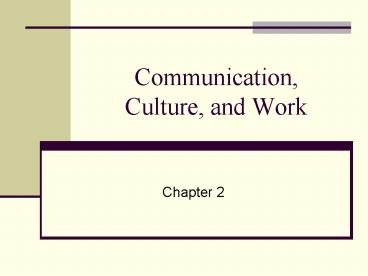 Communication, Culture, and Work PowerPoint PPT Presentation