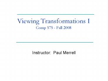 <Notice: Removed> Viewing Transformations I Comp 575 Fall 2008 PowerPoint PPT Presentation