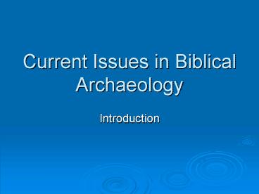 Current Issues in Biblical Archaeology PowerPoint PPT Presentation