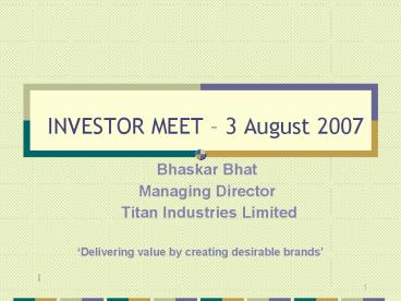 <Notice: Removed> INVESTOR MEET 3 August 2007 PowerPoint PPT Presentation