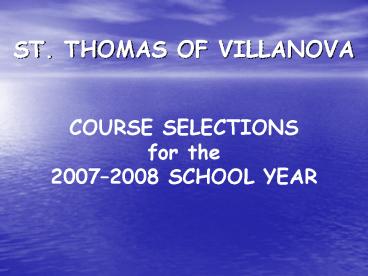 COURSE SELECTIONSfor the20072008 SCHOOL YEAR