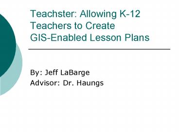 Teachster: Allowing K12 Teachers to Create GISEnabled Lesson Plans PowerPoint PPT Presentation
