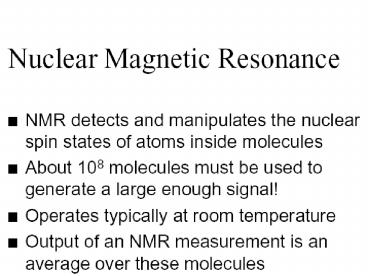- NMR was thought of in 1996