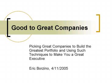 and Good to Great - Taught at Stanfords Graduate School of Business