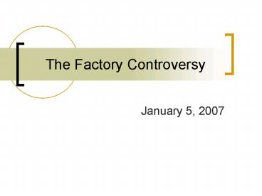 The Factory Controversy PowerPoint PPT Presentation
