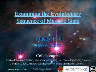 Title: Examining the Evolutionary Sequence of Massive Stars