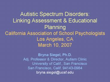 <Notice: Removed> Autistic Spectrum Disorders: Linking Assessment PowerPoint PPT Presentation