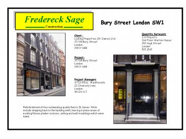 New electrical, mechanical and plumbing installation ... to rear art Gallery at first floor. Overhaul existing roofs and windows, construction of ... – PowerPoint PPT presentation
