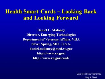 Title: Health Smart Cards Looking Back and Looking Forward