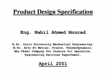 Product Design Specification PowerPoint PPT Presentation