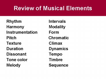 Review of Musical Elements PowerPoint PPT Presentation