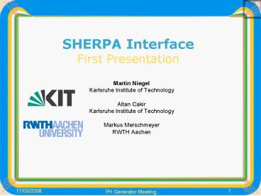 Title: SHERPA Interface First Presentation