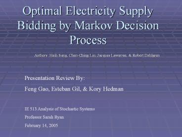 Optimal Electricity Supply Bidding by Markov Decision Process PowerPoint PPT Presentation