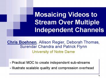 Title: Mosaicing Videos to Stream Over Multiple Independent Channels