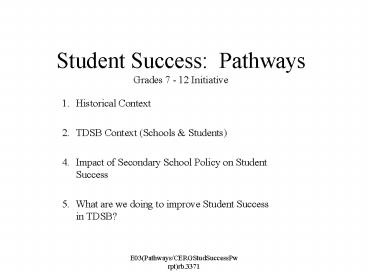 Title: Student Success: Pathways Grades 7 12 Initiative