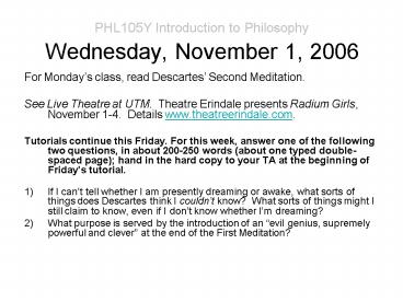 Title: PHL105Y Introduction to Philosophy Wednesday, November 1, 2006