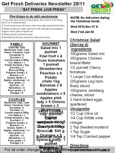 GOURMET Salad mix 1 punnet Kiwi fruit x 4 Truss