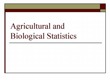 Title: Agricultural and Biological Statistics