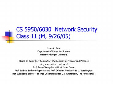 <Notice: Removed> CS 59506030 Network Security Class 11 M, 92605 PowerPoint PPT Presentation