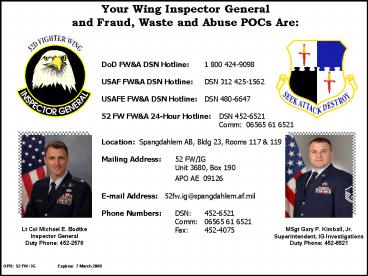 Your Wing Inspector General and Fraud, Waste and