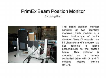 PrimEx Beam Position Monitor PowerPoint PPT Presentation