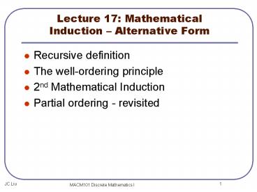 <Notice: Removed> Lecture 17: Mathematical Induction Alternative Form PowerPoint PPT Presentation