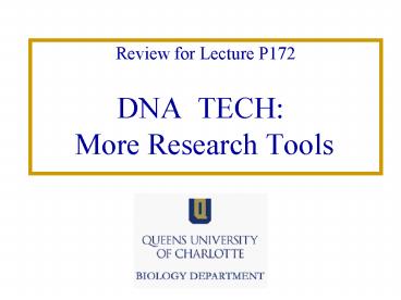 DNA TECH: More Research Tools PowerPoint PPT Presentation