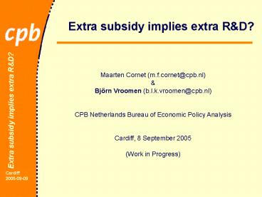 Extra subsidy implies extra R PowerPoint PPT Presentation