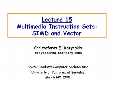 Title: Lecture 15 Multimedia Instruction Sets: SIMD and Vector