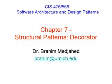 Title: Chapter 7 Structural Patterns: Decorator