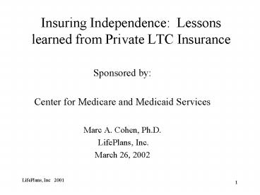 Title: Insuring Independence: Lessons learned from Private LTC Insurance